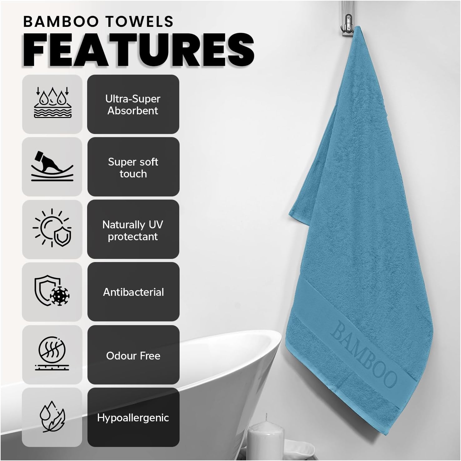 Hypoallergenic & Antibacterial: Experience gentle care with hypoallergenic bamboo fibers, fast drying towel ideal for sensitive skin, and enjoy added peace of mind with natural antibacterial properties, ensuring a clean and hygienic hand-drying experience.